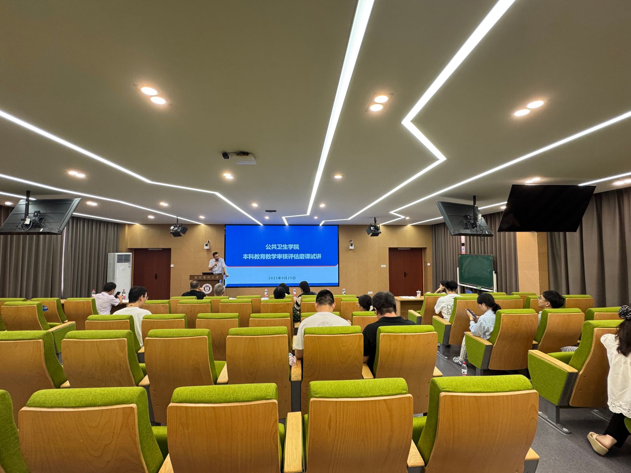 为深入贯彻落实学校本科教育教学审核评估工作的部署要求,营造浓厚的迎评氛围,群交 近日在同济楼6A107组织召开本科教育教学审核评估应知应会暨磨课试讲活动,教学发展中心主任金伟琼、学院党委书记王芳、副院长刘佳明、党委副书记王张叶、党委委员钟崇洲、各学系及职能部门全体教师共同参加此次会议,会议由刘佳明主持。
