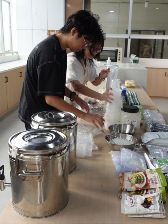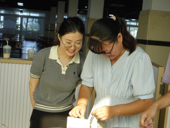 奶茶制作环节,“营养专家”刘丽花老师进行了全程教学演示,从养生食材的甄选、茶汤的标准化冲泡,到奶基底的科学调配,清晰讲解制作过程。在实践环节,鼓励同学们结合秋日养生需求与个人创意,自主尝试食材组合 ,设计专属养生奶茶配方,实现从 “学会制作” 到 “创新创作” 的进阶。大家一起欢声笑语其乐融融,拉进了学生对干部教师的距离并切身感受到了老师们对自己的关心和关怀,也进一步磨合了宿舍成员间的小默契!