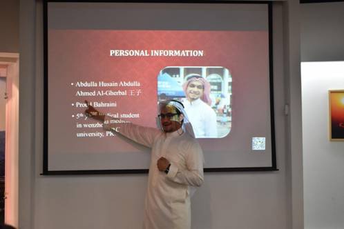 王子身着巴林节日的特色服饰来到了现场,分别从古代历史、景点以及文化习俗三个方面方面介绍了巴林。巴林大多数人信仰伊斯兰教,他们的节日与宗教习俗有着密切的联系,例如:斋戒、祭奠默罕默德等。在众人好奇的清真食物方面,王子也进行了详细介绍——清真不仅是不吃pork、不喝wine