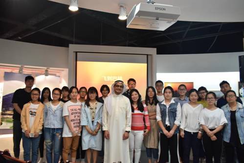 茶歇时,王子拿出提前准备的巴林节日服饰,供感兴趣的学生试穿。最后的提问环节,观众热情的与王子互动,用英文向他提出对中巴之间文化差异的疑问——亲临现场面对面体会巴林文化的魅力,感受当地的传统文化,不仅可以增进对巴林的了解,更能提高同学的口语能力。