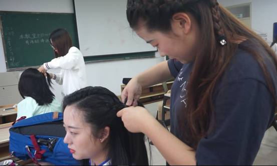 比赛前的几个小时洋溢着紧张而又欢快的气氛。卫管学院艺术团化妆队认真投入在为选手们化妆的前期准备中。小小的教室里,大家你帮着我,我帮着你,为晚上的比赛而忙碌着------充实而快乐。