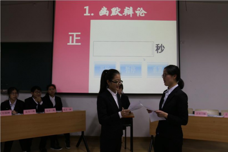 辩论赛共计16轮,环环扣人心弦。“幽默辩论”作为“开胃菜”暖场后比赛正式开始。正方一辩亮出自己的观点:“盛世喝茶,乱世喝酒”——盛世安稳,应当保持和平的生活态度,以饮茶平心;乱世无力看风景,当以饮酒壮志。反方四辩提问正方一辩之后,反方一辩也正式提出自己的观点:“盛世喝酒,乱世喝茶”——盛世经济昌盛,文化繁荣,“酒”为文学作品的创作蒙上了浪漫色彩,也为诗人提供灵感;乱世需要清静与理智,品茶有助于培养这样的心态。同样正方四辩提问反方一辩。