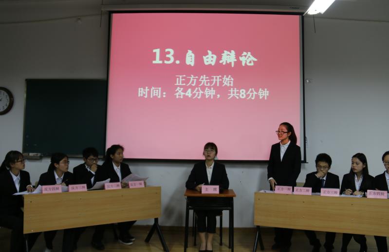 时间在辩手们的唇枪舌战中流过,到了最激烈的自由辩论环节。双方都坚定自己的立场,各类古往今来的诗词、事迹滔滔不绝地涌出——正方恰道:“‘因过竹院逢僧话,偷得浮生半日闲’,盛世当养茶之静。‘苟利国家生死以,岂因祸福避趋之’,乱世需要抛头颅、洒热血的英雄。‘壮志饥餐胡虏肉,笑谈渴饮匈奴血’,喝酒壮胆,平反战乱。”反方却论:“李白处唐朝盛世年间写下‘将进酒,杯莫停’,酒为其提供灵感,铺上浪漫色彩。孟子曾说:‘穷则独善其身,达则兼济天下’,乱世自保最重要,饮一壶茶,保持清醒的头脑,为的也是走向盛世。”