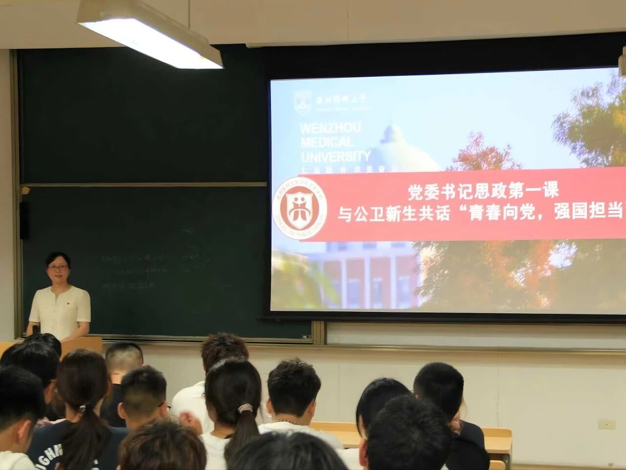 学院党委书记王芳老师给同学们带来了思政第一课——与公卫新生共话“青春向党,强国担当”。她寄语大家: